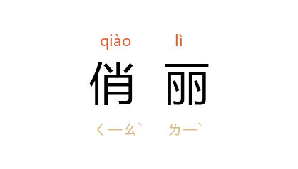引明·无名氏《金雀记·第五出》:「自家生得美容姿,俏丽;冲天学问与山齐,得意。」