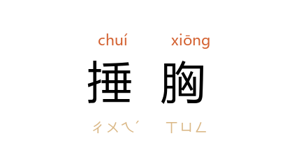 ⒈ 怒极或痛极时用手捶打自己的胸膛。