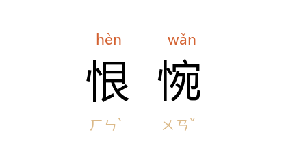引《新唐书·儒学传下·陈京》:“帝恨惋曰:‘ 京 与 赞,真贼臣。’”《增修诗话总龟》卷三七引 宋 钱易 《南部新书》:“先天 中, 王上客 为侍御史,自以才望当在前行。忽除膳部员外郎,微有恨惋。”