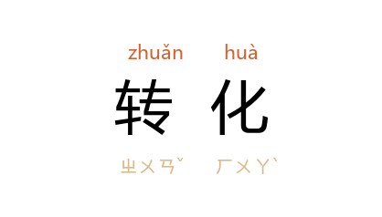 ⒉ 描述一件事物时,转变其原来的性质,化成另一种本质截然不同的事物,而加以形容叙述的修辞法,称为「转化」。分人性化、物性化、形象化三种。