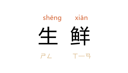 ⒈ 新鲜的鱼肉蔬果。