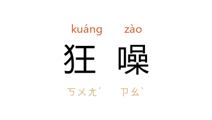 ⒈ 见“狂噪”。亦作“狂譟”。形容高声叫嚷。