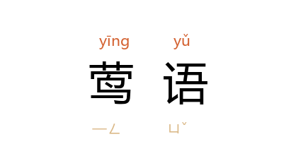 引晋 孙绰 《兰亭》诗之二:“鶯语吟脩竹,游鳞戏澜涛。”唐 白居易 《琵琶引》:“间关鶯语花底滑,幽咽泉流水下难。”陈三立 《园夜听骤雨》诗:“賸得放晴浇茗椀,隔枝鶯语可分明。”