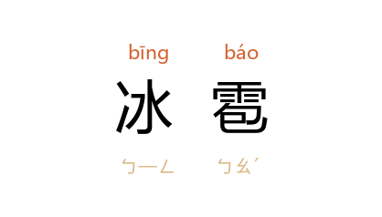 ⒈ 空中降下的冰块,多在晚春和夏季伴同雷阵雨出现。又称做雹,或雹子。