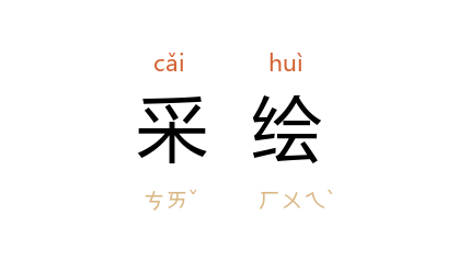 引宋 苏轼 《书<篆髓>后》:“自 汉 以来,学者多以一字考经,字同义异,皆欲一之,雕刻采绘,必成其説。”清 恽敬 《答来卿》:“是以并叙 三代,均用喻言,使文体均称,翻出异样采绘,照耀耳目。”