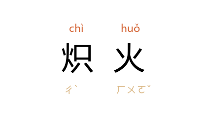 引晋 陶潜 《搜神后记》卷七:“王 至家,炽火焚之,后寂然无復声。”《法苑珠林》卷一一一:“復更前进,见一白象,炽火烧身,苦不异前。”清 纪昀 《阅微草堂笔记·姑妄听之二》:“里俗遇人病篤时,私剪其着体衣襟一片,炽火焚之。其灰有白文,斑驳如篆籀者,则必死。”