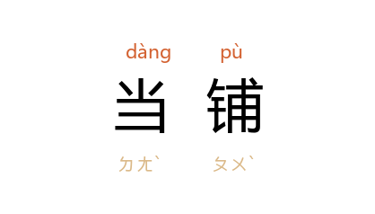 ⒈ 旧时专营收取抵押品放高利贷的店铺。放款多少,按抵押品的估价而定。放款额一般在抵押品价值的五成以下,剥削严重。抵押期限自六个月到十八个月不等。押款人过期不赎,抵押品即归当铺所有。