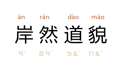 引邹韬奋 《患难馀生记》第一章:“他那一副美髯,和他的蔼然仁者的岸然道貌,配合在一起,尤使人肃然起敬。”