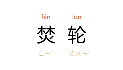 引《诗·小雅·谷风》“维风及頽” 毛 传:“頽,风之焚轮者也。”孔颖达 疏引 李巡 曰:“焚轮,暴风从上来降谓之頽。頽,下也。”晋 葛洪 《抱朴子·明本》:“焚轮虹霓寝其祅,穨云商羊戢其翼。”