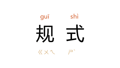 引南朝 梁 刘勰 《文心雕龙·颂赞》:“《时迈》一篇, 周公 所製,哲人之颂,规式存焉。”宋 文莹 《玉壶清话》卷四:“景德 初,北戎请盟,欲撰答书,久亡体制。时 赵文定 安仁 为学士,独记 太祖 朝书札规式,詔撰之。”明 蒋一葵 《长安客话·洪光寺》:“内圆殿一座,乃 高丽 僧所进,规式亦奇。”