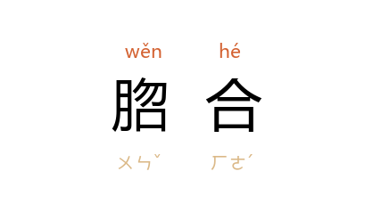 引《庄子·齐物论》:“旁日月,挟宇宙,为其脗合,置其滑涽,以隶相尊。”陆德明 释文引 向秀 曰:“若两脣之相合也。”《朱子语类》卷六:“此理循环不穷,脗合无间。”金 雷渊 《同裕之钦叔分韵得莫论二字》:“悬断漏天枢,高啸惊邻垣,脗合政相和,意到俄孤騫。”清 沉初 《西清笔记·纪庶品》:“尝见一方砚匣,工緻平整,承盖处四面脗合。”