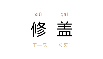 引《水浒传·第四回》:「倒了亭子,也要他修盖。」《儿女英雄传·第二四回》:「不多几日修盖完工,铺设齐全。」