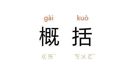⒈ 归纳,总括。把事物的共同特点归结在一起加以简明地叙述,扼要重述。