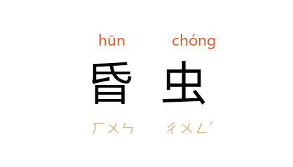 引鲁迅 《且介亭杂文末编·论现在我们的文学运动》:“但有些我的战友,竟也有在作相反的‘美梦’者,我想,也是极胡涂的昏虫。”鲁迅 《书信集·致章廷谦》:“恐怕连他自己也不相信他自己的话,世间竟有倾耳而听者,因其是昏虫之故也。”