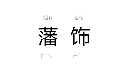引《荀子·荣辱》:“今以夫先王之道,仁义之统,以相群居,以相持养,以相藩饰,以相安固耶?”宋 王安石 《虞部郎中赠卫尉卿李公神道碑》:“近世士多外自藩饰为声名,而内实罕能治其家。”清 刘大櫆 《封大夫方君传》:“论曰:‘世之儒者,以诵説《诗》《书》自藩饰。’”