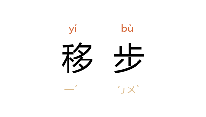 引《西游记·第五回》:「按住云头,轻轻移步,走入里面。」《初刻拍案惊奇·卷一》:「远远草丛中一物突高,移步往前一看,却是床大一个败龟壳。」