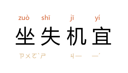 引清 昭槤 《啸亭杂录·木果木之败》:“兵家之事,宜於乘鋭直进。若不审敌势,坐失机宜,使兵心至於溃败,虽欲振起,不易得也。”清 骆秉章 《奏粤东剿办逆夷奏报不实保举过滥折》:“如该将军于义民奋击之时,能督率将弁协擒 义律,何至移营避敌,坐失机宜?”郭沫若 《孔雀胆》第一幕第一场:“我看你们实在是坐失机宜,让敌人多准备了一天一夜。”