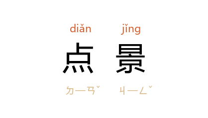 ⒈ 山水画中点缀的景物。通常指人物、草亭、桥等,属点缀性质,不是画中主角。