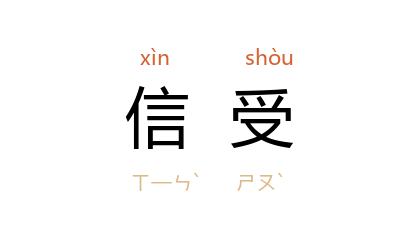 引《汉书·文学传下·任孝恭》:“孝恭 少从 萧寺 云法师 读经论,明佛理,至是蔬食持戒,信受甚篤。”唐 元稹 《大嘴乌》诗:“专听乌喜怒,信受若神龟。”鲁迅 《华盖集续编的续编·关于<三藏取经记>等》:“其余二事,则那时便已不足使我信受,因此就不免‘疑’起来了。”