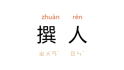 引《文献通考·经籍十四》:“《五服志》三卷,《崇文总目》不著撰人名氏。”鲁迅 《且介亭杂文二集·书的还魂和赶造》:“不用原题,别立名目,甚至另题撰人,使购买者只觉其收罗之广。”胡道静 《中国古代的类书》第五章:“《新志》所载《初学记》撰人,多在其中。”