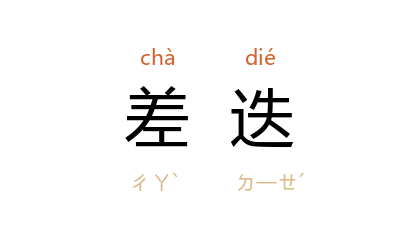 引元 施惠 《幽闺记·幽闺拜月》:“为军马犯闕,散失忙寻相应者,那时节只争个字儿差迭。”明 高明 《琵琶记·官媒议婚》:“差迭,须知少年自有人爱了,谩劳你嫦娥提挈。”明 金銮 《斗鹌鹑·王西庄宴集》套曲:“到头来乐事有差迭,痴呆。”