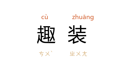 引宋 张孝祥 《水调歌头》词:“趣装入覲,行矣归去作盐梅。”明 宋濂 《亡友陈宅之墓铭》:“庚子之夏,朝廷遣使者来召 濂,趣装上 南京,擢为王官。”清 蒲松龄 《聊斋志异·娇娜》:“生入城,勾当数日,遂连夜趣装。”