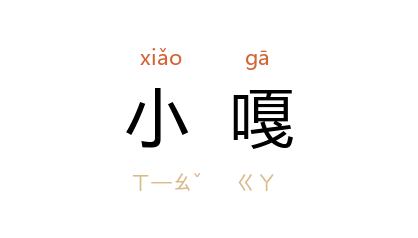 引周立波 《暴风骤雨》第一部四:“回来那时光,妈早死了,媳妇领着小嘎在外屯要饭。”《新华文摘》1981年第9期:“来的不但有劳力们,一家之长们,也还有爱凑热闹的小嘎子们以及奶着孩子的妇女。”