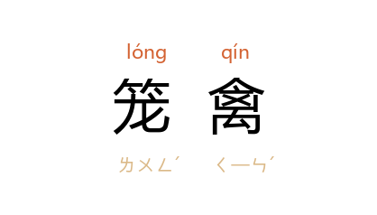 引唐 韦应物 《送刘评事》诗:“吴中 高宴罢,西上一游 秦。已想 函关 道,游子冒风尘。笼禽羡归翼,远守怀交亲。”唐 白居易 《戊申岁暮咏怀》:“七年囚闭作笼禽,但愿开笼便入林。”