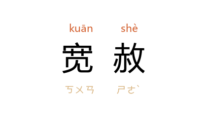 引《史记·淮南衡山列传》:“及 孝文帝 初即位, 淮南王 自以为最亲,骄蹇,数不奉法。上以亲故,常宽赦之。”唐 韩愈 《县斋有怀》诗:“投荒诚职分,领邑幸宽赦。”《东周列国志》第二回:“今已悔悟自新,愿父王宽赦!”太平天囯 洪秀全 《严禁违犯第七天条诏》:“如有犯第七天条者,一经查出,立即严拿斩首示众,决无宽赦。”