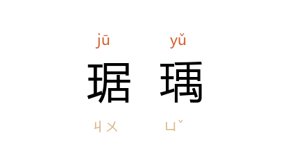 引《诗·郑风·有女同车》“佩玉琼琚” 毛 传:“佩有琚瑀,所以纳间。”《大戴礼记·保傅》:“上车以和鸞为节,下车以佩玉为度,上有双衡,下有双璜,衝牙玭珠,以纳其间,琚瑀以杂之。”卢辩 注:“总曰玭珠,而赤者曰琚,白者曰瑀。或曰:瑀,美玉;琚,石,次玉。”孔广森 补注:“衡璜衝牙,珮之大名,其中仍杂贯他玉。”元 刘詵 《贺张尚德宪郎》诗:“銛鋩干莫锋,温涧琚瑀佩。”