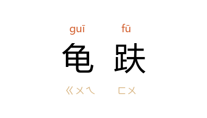 引唐 刘禹锡 《吏部侍郎奚公神道碑》:“螭首龟趺,德辉是纪。”宋 苏轼 《孙莘老求墨妙亭诗》:“龟趺入坐螭隐壁,空斋昼静闻登登。”明 王三聘 《古今事物考·丧礼·碑碣》:“唐 葬令,五品以上,螭首龟趺。”