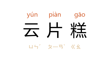 ⒈ 食品名。用米粉加糖和核桃仁等制成的糕。切做长方形薄片,色白,故名。