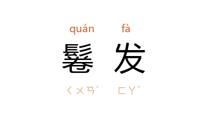 引唐 李贺 《龙夜吟》:“鬈髮胡儿眼睛緑,高楼夜静吹横竹。”清 厉鹗 《陈居中蛮王入贡图》诗:“此皆鬈髮深目眶,向化慕义恭趋蹌。”杨朔 《印度情思》:“他长着满头黑色的鬈发,望着我笑。”
