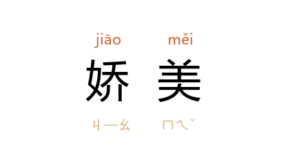 引《天雨花》第一回:“若还生得容娇美,岂不天生是我锦幃人。”王统照 《春雨之夜》:“我正在院子里徘徊着,看竹篱里萱花的绿长叶子,红黄花蕊,着了昨夜一场时雨,非常娇美。”骆宾基 《旅途》一:“她在他们中间愉快地坐了一会儿,在那时,她的面孔显着少有的温柔、娇美、年轻。”