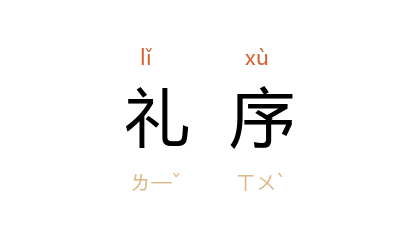 ⒈ 本谓礼仪的次序得以实现。语本《礼记·礼运》:“故圣人参于天地,并于鬼神,以治政也;处其所存,礼之序也。”孙希旦集解:“故君必正身立于无过之地,而与天地合其德,与鬼神合其吉凶,然后礼序而民治也。”又:“故圣王修义之柄、礼之序,以治人情。”孙希旦集解:“礼者,所行有节而不可乱,故言'序'。”后以“礼序”泛指礼仪制度。