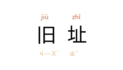 引隋·江总〈芳林园天渊池铭〉:「摽置旧址,开浚昔基。」《旧唐书·卷一六五·柳公绰传》:「聊因旧址增葺,愧卿忠言。」
