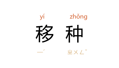 引唐 白居易 《有木》诗之五:“主人不知名,移种近轩闥。”宋 邵博 《闻见后录》卷二九:“千叶黄梅……近 兴、利州 山中,樵者薪之以出,有 洛 人识之,求於其地尚多,始移种遗喜事者。”
