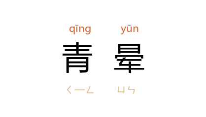⒈ 中心较浓周围渐淡的青黑色圆形斑痕。