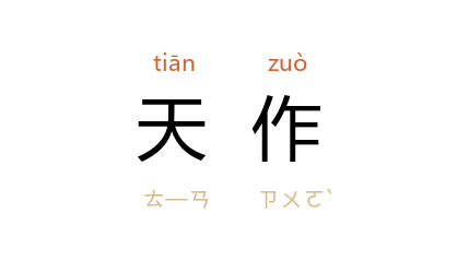 引《诗·周颂·天作》:“天作高山,大王荒之。”毛 传:“作,生;荒,大也。天生万物於高山,大王行道能安天之所作也。”唐 韩愈 《燕喜亭记》:“凡天作而地藏之,以遗其人乎?”明 何景明 《雨颂》:“相彼物矣,既鞠既靡;自我天作,乃奋而起。”