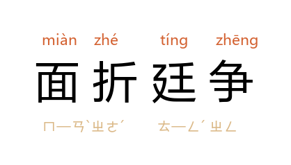 亦作“面折庭争”、“面折廷諍”。 《汉书·公孙弘传》:“每朝会议,开陈其端,使人主自择,不肯面折庭争。”