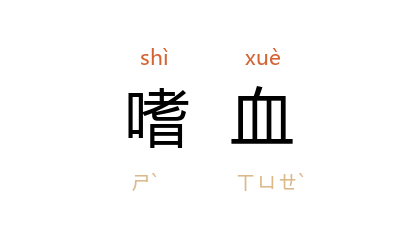 引《花城》1981年增刊:“﹝狼﹞嗜血的渴望和凶残的本性,使它张开血盆大口,吐出来的舌头垂涎滴滴。”巴金 《<沉默集>(二)序》:“哥代 始终不知道她的错误,她至死还把 马拉 当作一个嗜血的疯子。”