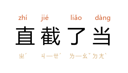 ⒈ 形容说话或做事干净俐落,毫不拐弯抹角。也作「直接了当」、「直捷了当」。
