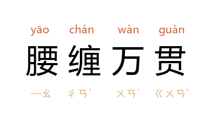 ⒈ 后因以“腰缠万贯”谓腰里装着很多钱,形容非常富有。