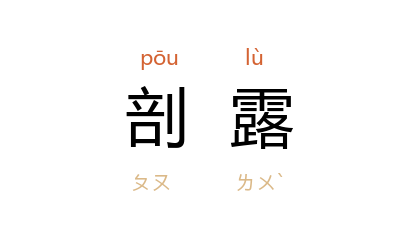 引《水浒传》第六四回:“二人递相剖露衷情。”明 唐顺之 《施推官墓志铭》:“或有过,虽亲故必剖露无所隐。”管桦 《清风客》二:“用她好象把整个的心都剖露出来的那种眼睛,直望着 常四起。”
