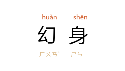 引《圆觉经》卷上:“彼之众生,幻身灭故,幻心亦灭。”唐 清江 《早春寄崔少府》诗:“宇宙成遗物,光阴促幻身。”元 谷子敬 《城南柳》第四折:“恰纔杀了的是他的幻身。他是 瑶池 仙种,已入长生不老之乡。”
