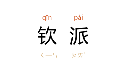 引《儿女英雄传》第三四回:“只有两旁公案边坐着许多钦派稽查接谈换卷的大臣。”《官场现形记》第十八回:“原来是钦派两位大员,随带司员,驰驛前赴 福建 查办事件。”《清史稿·礼志七》:“时钦派读本 满 学士一人,奉折本匣昇东阶,折旋而退,大学士从,依班次跪。”