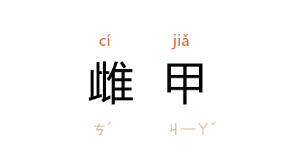 ⒈ 年逾花甲之同庚者二人,其幼者之甲子为雌甲子。宋刘克庄《挽蔡遵府阁学》诗之二:“雌甲何其厄,同庚只休。”元方回《寄寿牟提刑献之巘诗序》:“前浙东宪使大卿陵阳牟公献之先生宝庆三年丁亥年正月十一日生,其贤子孙以丙申正旦奉觞为亲庭庆七十。紫阳方回亦以丁亥年前五月十一日生,为雌甲子。”又诗:“我亦七旬乃雌甲,林惭磵愧负山灵。”一说甲子逢双日者。
