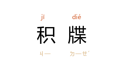 引《淮南子·本经训》:“来谿谷之流,饰曲岸之际,积牒旋石,以纯脩碕。”高诱 注:“牒,累。”清 张岱 《陶庵梦忆·包涵所》:“南园在 雪峯塔 下,北园在 飞来峯 下,两地皆石藪,积牒磥砢,无非奇峭。”