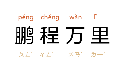 引《庄子·逍遥游》。后比喻前程远大,不可限量。明·杨珽《龙膏记·第九出》:「莫叹儒冠久误身,鹏程万里终当奋。」