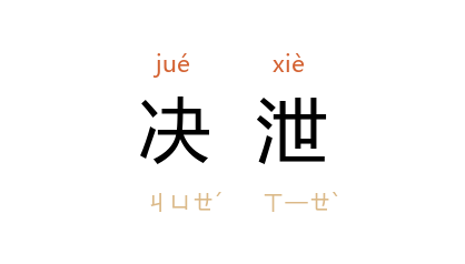 引晋 陆云 《答车茂安书》:“火耕水种,不烦人力,决泄任意,高下在心。”晋 束晳 《广农议》:“云雨生於畚臿,多稌生於决泄。”唐 刘禹锡 《高陵县令刘君遗爱碑》:“决洩有时,畎澮有度。”宋 欧阳修 《论水入太社札子》:“及差兵匠併力先且决洩,戽出积水。”